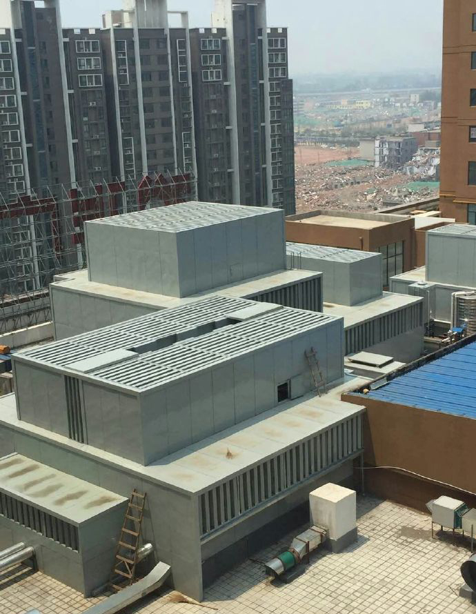2.降噪的基本原理:聲波在傳播階段遇到障礙物時,會發(fā)生反射、散射和繞射三種狀態(tài)。聲屏障是在聲源和聲音接收點(diǎn)之間添加的裝置。用于隔離和吸收從聲源到聲音接收點(diǎn)的直達(dá)聲波,使部分聲波在遇到障礙物時被反射,部分聲波被吸附減弱,然后被屏幕利用。附加體散射(很小)、屏頂衍射等衰減方式到達(dá)收聲點(diǎn),達(dá)到減輕收聲點(diǎn)噪聲影響的目的,達(dá)到降噪效果。 1、為控制風(fēng)機(jī)低頻噪聲,在排風(fēng)口安裝消聲設(shè)備。消音設(shè)備的選擇非常重要。一般消聲設(shè)備對中低頻噪聲影響不大。電阻消聲設(shè)備具有很好的控制效果,但頻率選擇性很強(qiáng),所以一般選用阻抗復(fù)合消聲設(shè)備。阻抗復(fù)合消聲設(shè)備是指吸聲與反射聲音適當(dāng)結(jié)合的消聲設(shè)備。同時具有電阻式消音器消除中高頻噪聲和電阻式消音器消除低頻中頻噪聲的特點(diǎn),具有寬頻帶消音效果。 2. 在進(jìn)風(fēng)口處安裝消音器或隔音屏障。安裝隔音屏障時,首先要考慮的是隔音屏障與冷卻塔百葉進(jìn)風(fēng)口之間的距離為1m左右,以保證冷卻塔的通風(fēng)進(jìn)風(fēng)口不被堵塞,從而使冷卻塔的實(shí)際冷卻效果更強(qiáng)。為了防止噪聲被折射而影響消聲導(dǎo)管的聲學(xué)效果,可在消聲導(dǎo)管附近安裝相應(yīng)長度的聲屏障,以提供輔助降噪作用。冷卻塔噪聲處理相對容易,但在防止散熱性能受損的同時,必須充分考慮隔音管理。消音器和消音百葉雖然可以顯著降低噪音,但必須合理設(shè)計,設(shè)計時必須充分考慮散熱性能和功率。表現(xiàn)。如果結(jié)構(gòu)不合理,就達(dá)不到降噪的目的。如果流阻過大,會損害冷卻塔的運(yùn)行,降低制冷量。不良的功率性能設(shè)計也會增加阻力,從而產(chǎn)生混響噪聲,所以在處理階段必須綜合考慮。 。